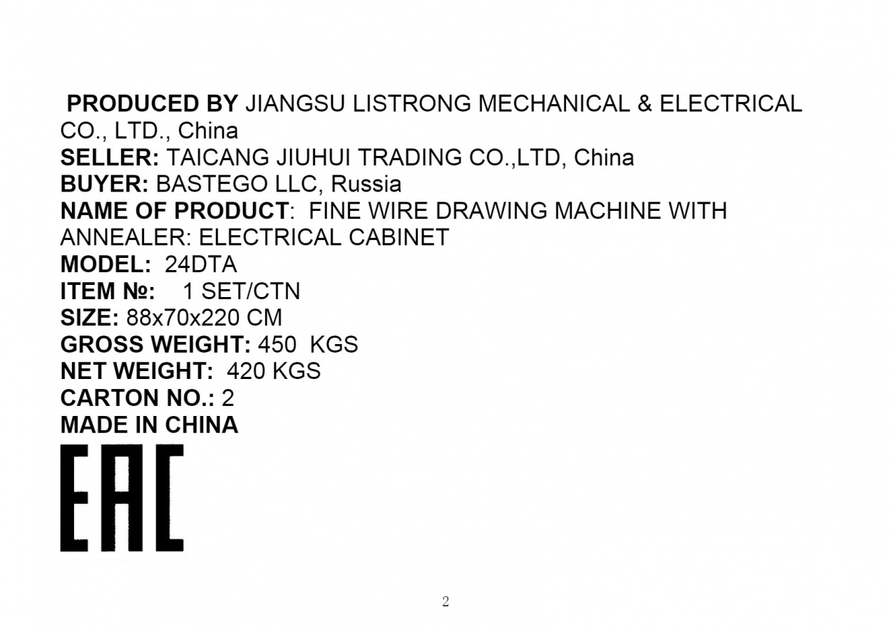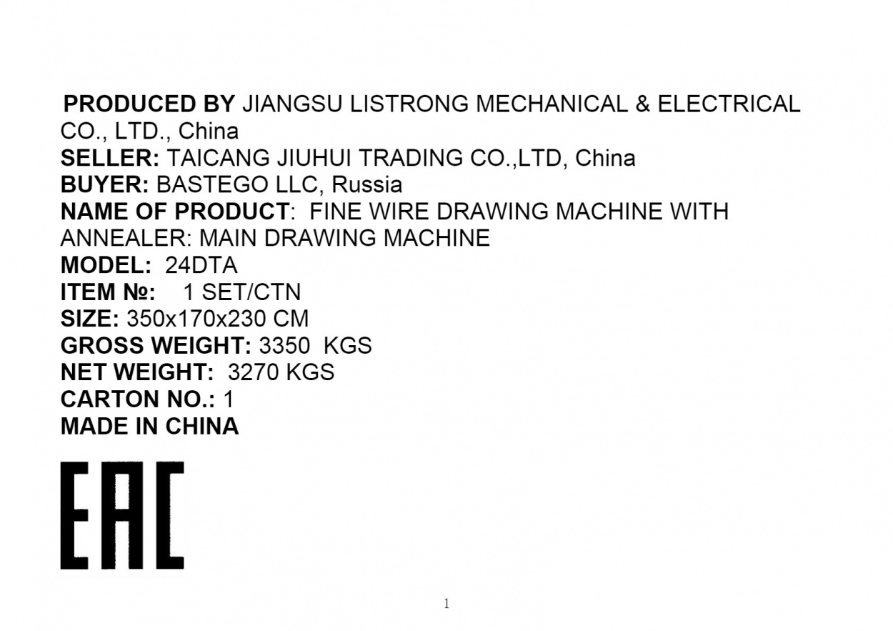 Поставка машины тонкого волочения с отжигом, февраль 2025 г.